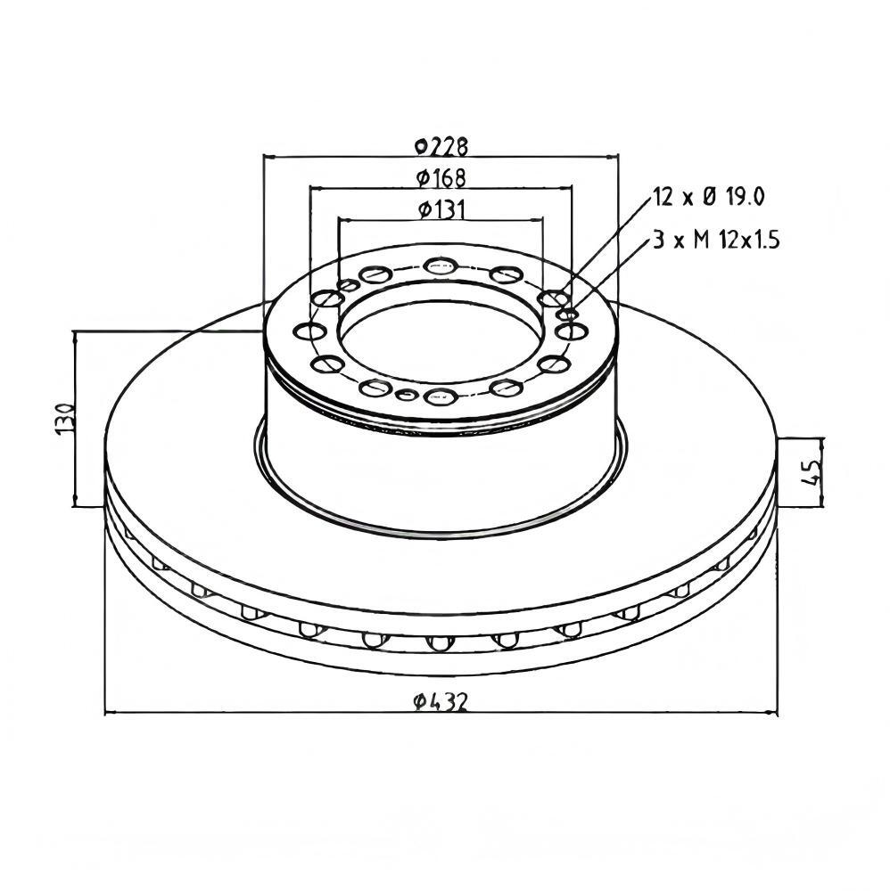 Brake disc , D: 432 mm, 12 bores