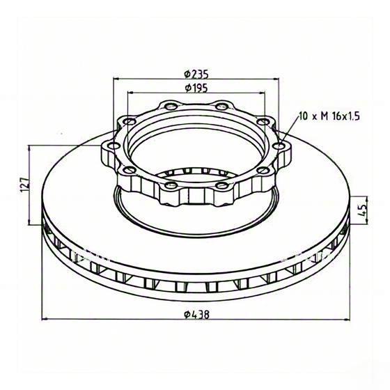 Brake disc, D: 438 mm, 10 bores