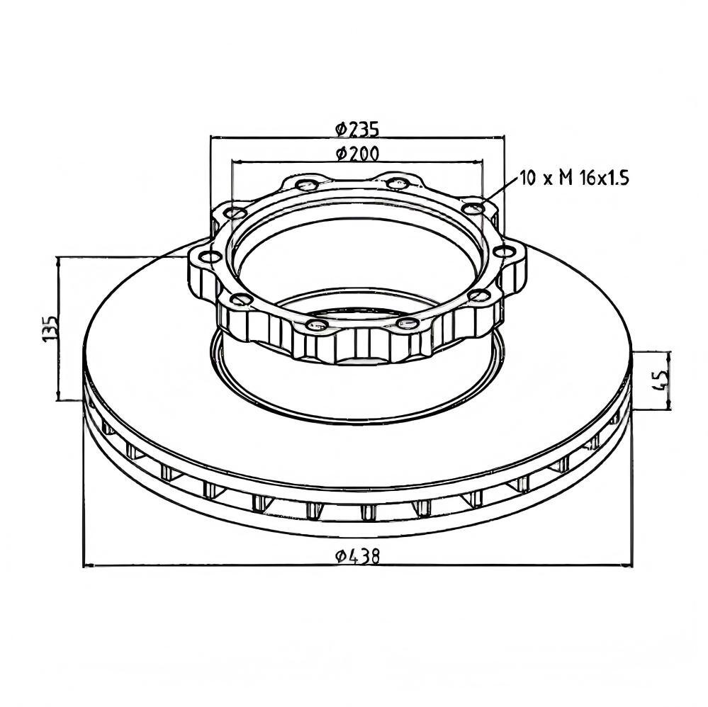 Brake disc D: 438 mm, 10 bores, P: 235 mm, S: 45 mm
